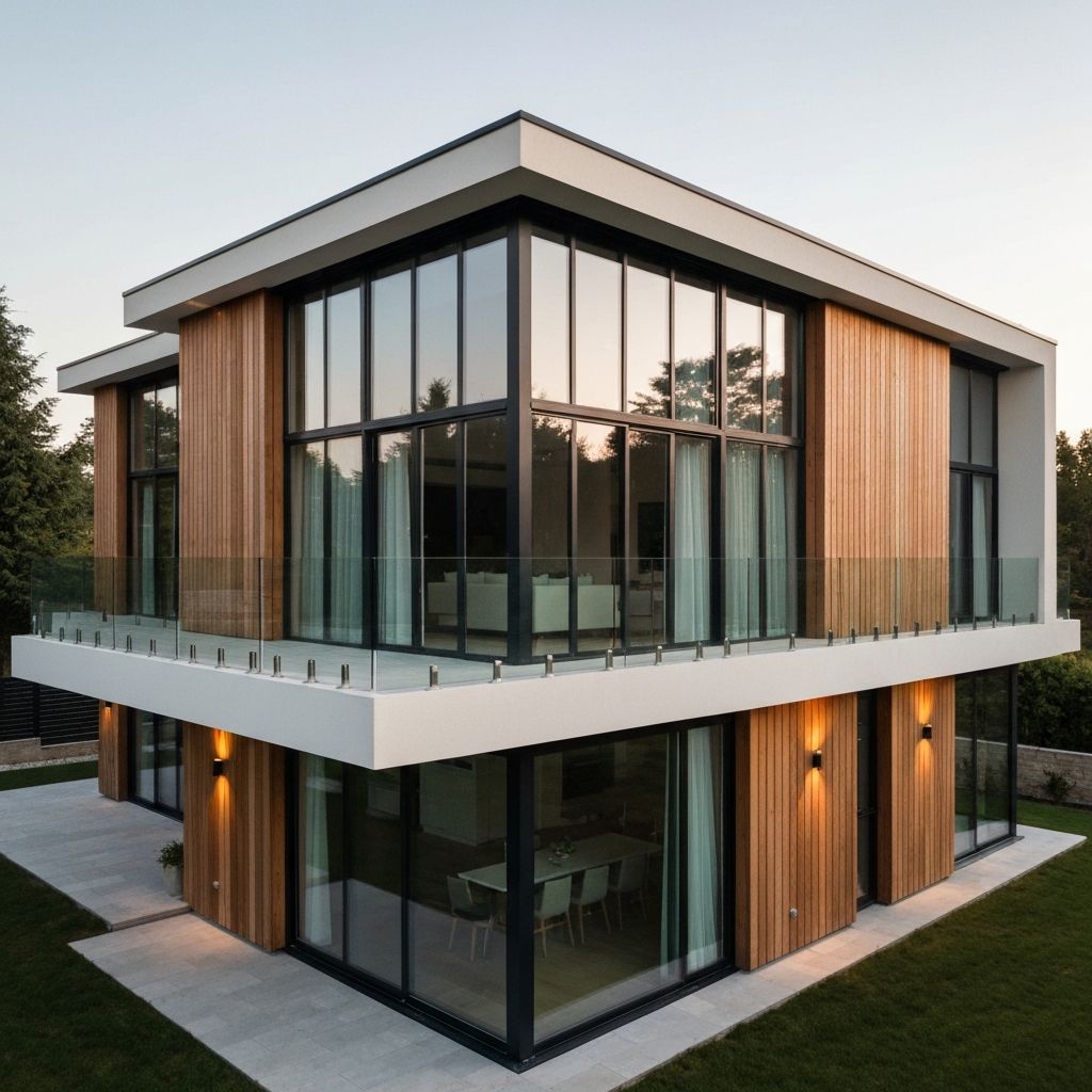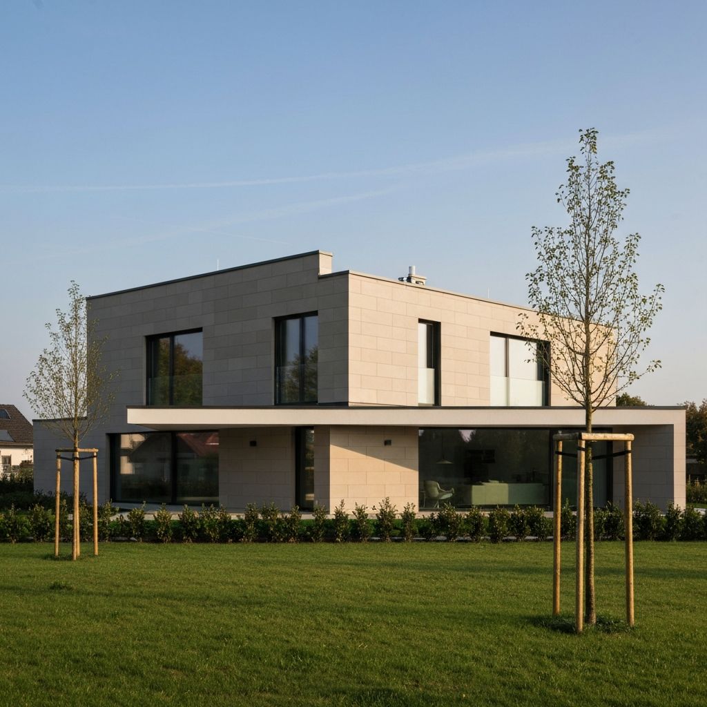Zeitgemäßes Fertighaus in Holzbauweise mit energieeffizienter Dämmung und modernem Grundriss